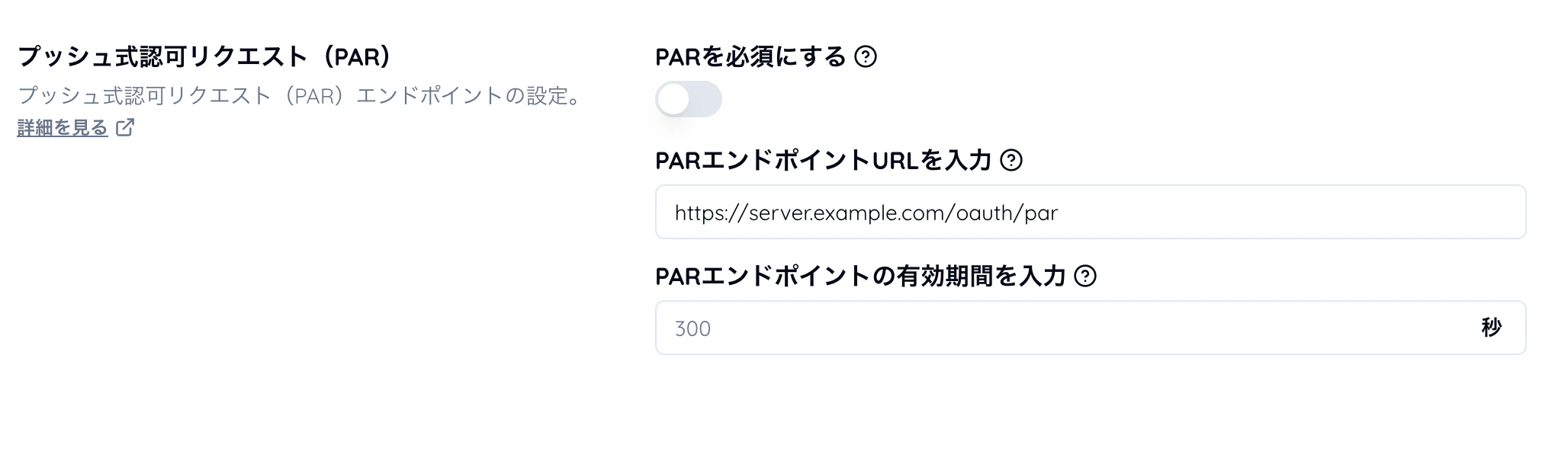 - PAR エンドポイントの URL を設定します。