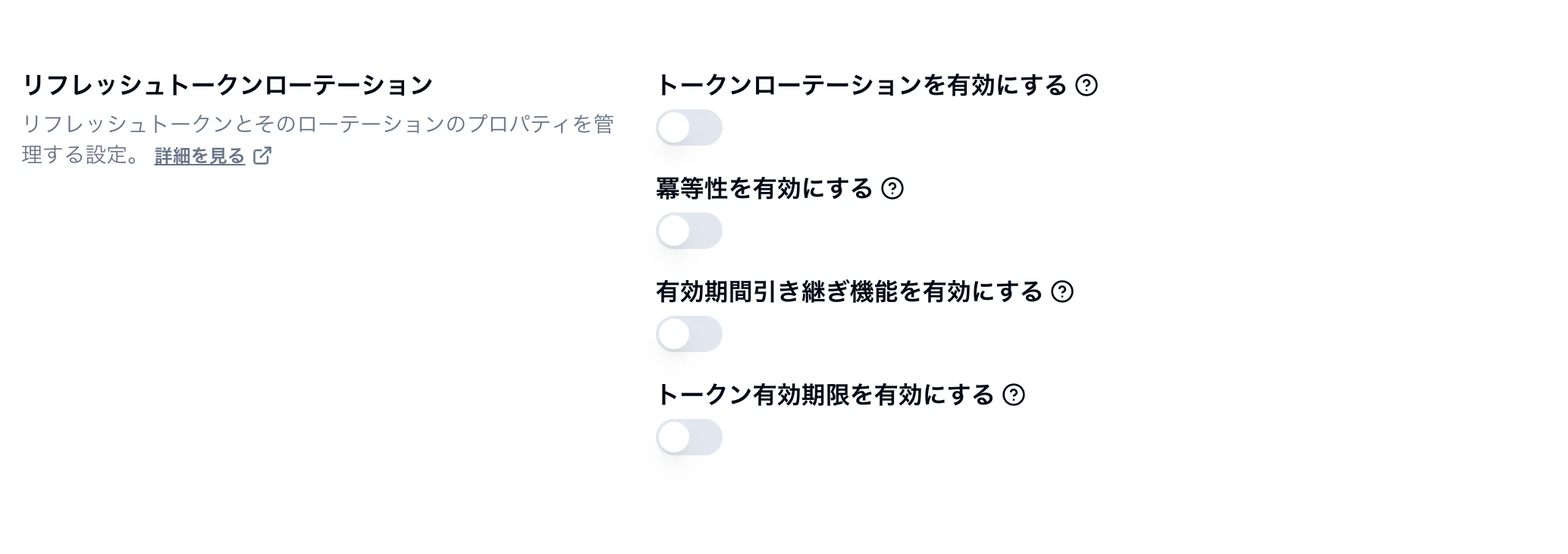 継続使用するを選択します。“FAPI 2.0 Security Profile, 5.3.2. Requirements for authorization servers, 5.3.2.1. General requirements” 9. 例外的な状況を除いて、リフレッシュトークンのローテーションは使用してはならない。(NOTE 1 を参照)