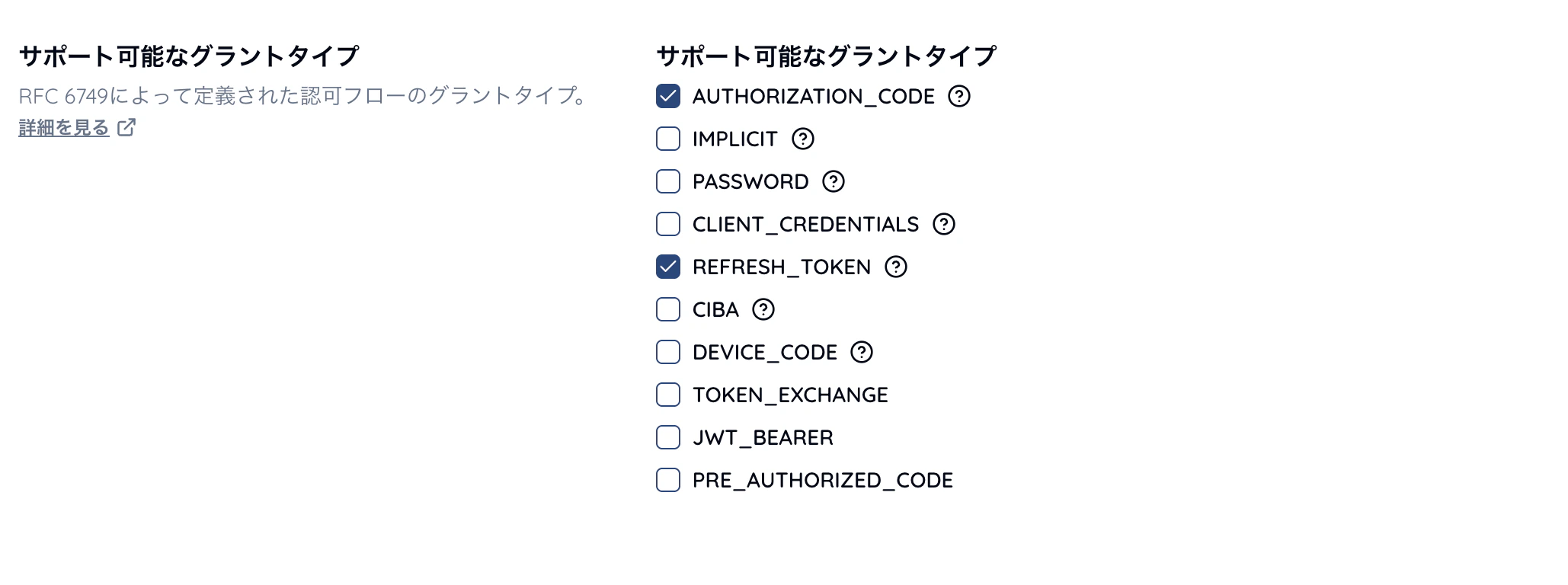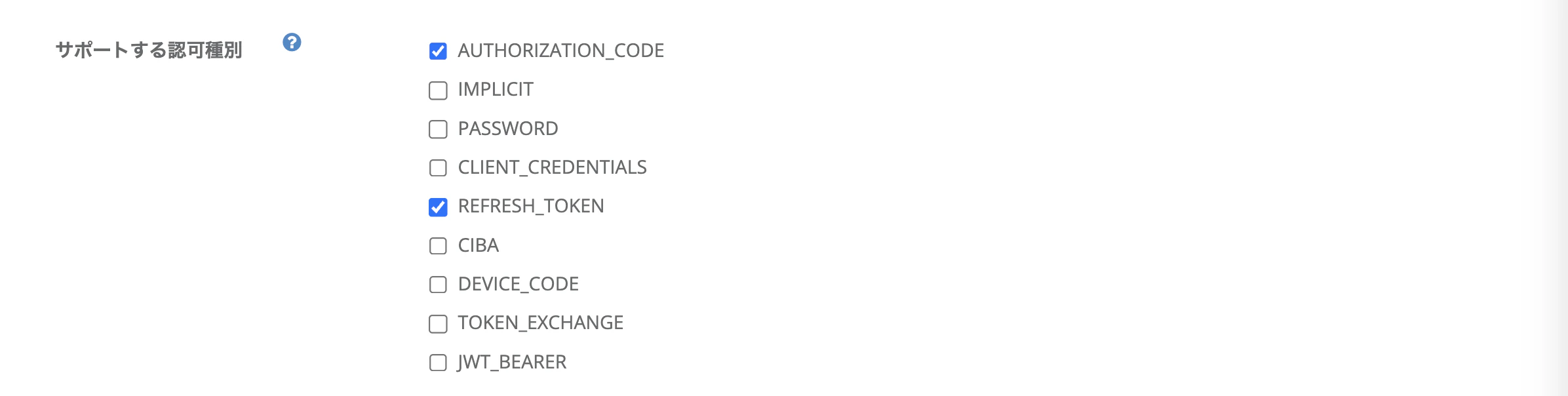 AUTHORIZATION_CODE を含めます。☑️ 認可 > サポートする応答種別