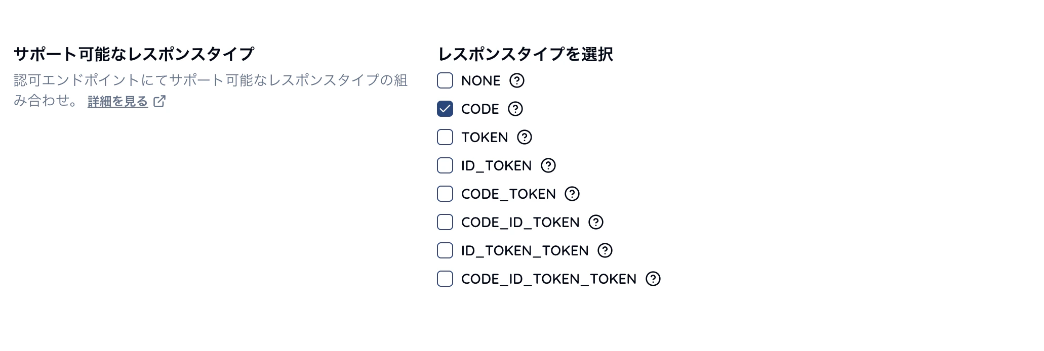 AUTHORIZATION_CODE を含めます。☑️ エンドポイント > 基本設定 > サポート可能なレスポンスタイプ