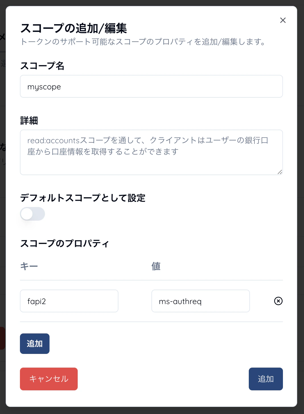 ☑️ トークン&クレーム > 詳細 > スコープ