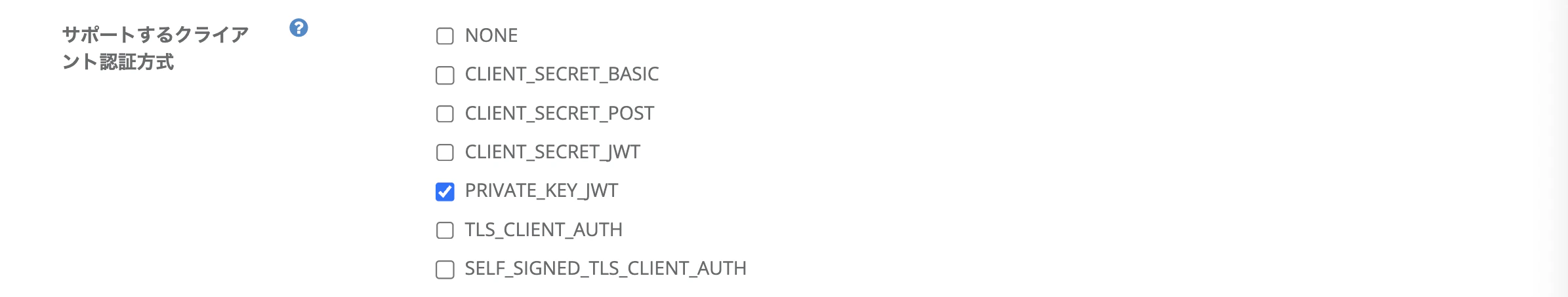 PRIVATE_KEY_JWT を選択します。“FAPI 2.0 Security Profile, 5.3.2. Requirements for authorization servers, 5.3.2.1. General requirements” 6. クライアント認証は以下のいずれかを利用しなければならない: