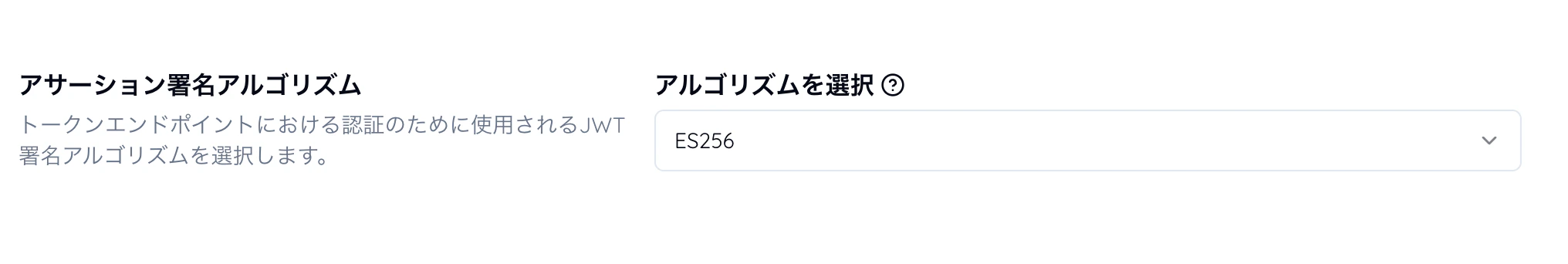 ☑️ 認可 > トークンエンドポイント > アサーション署名アルゴリズム