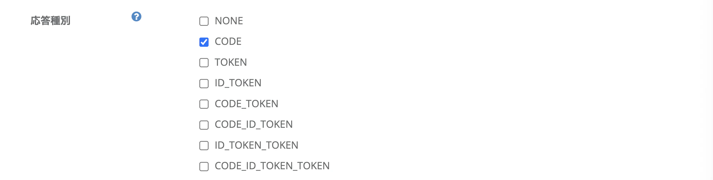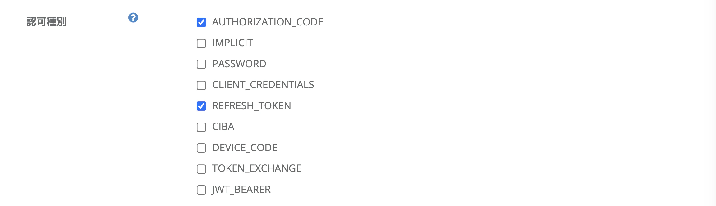 AUTHORIZATION_CODE を含めます。☑️ 認可 > 応答種別