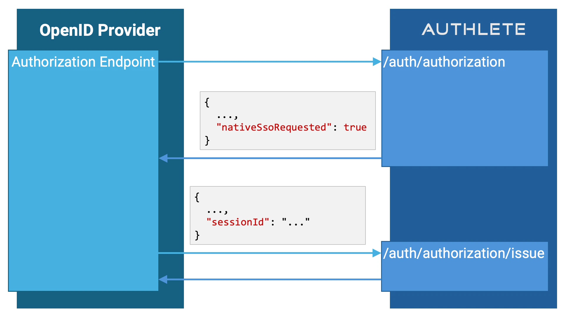 認可リクエストがNative SSOを要求していると判断された場合、具体的には次の条件が全て満たされた場合、Authleteの/auth/authorizationAPIからのレスポンスには、nativeSsoRequestedという真偽値プロパティが値trueで含まれます。