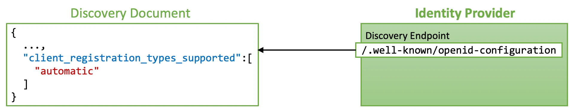 When the client ID in an OAuth/OIDC request is unknown but looks like an entity ID, an identity provider that supports OpenID Federation tries to find a trust chain that starts from the entity ID and ends with one of trust anchors that the identity provider trusts. If such a trust chain is found, the identity provider automatically registers a new client with the entity ID and metadata and continues to process the OAuth/OIDC request. The discovery document (OpenID Connect Discovery 1.0) of an identity provider that supports automatic client registration includesautomatic in the client_registration_types_supported server metadata. Note that the OpenID Federation specification defines the client_registration_types_supported server metadata as mandatory.
