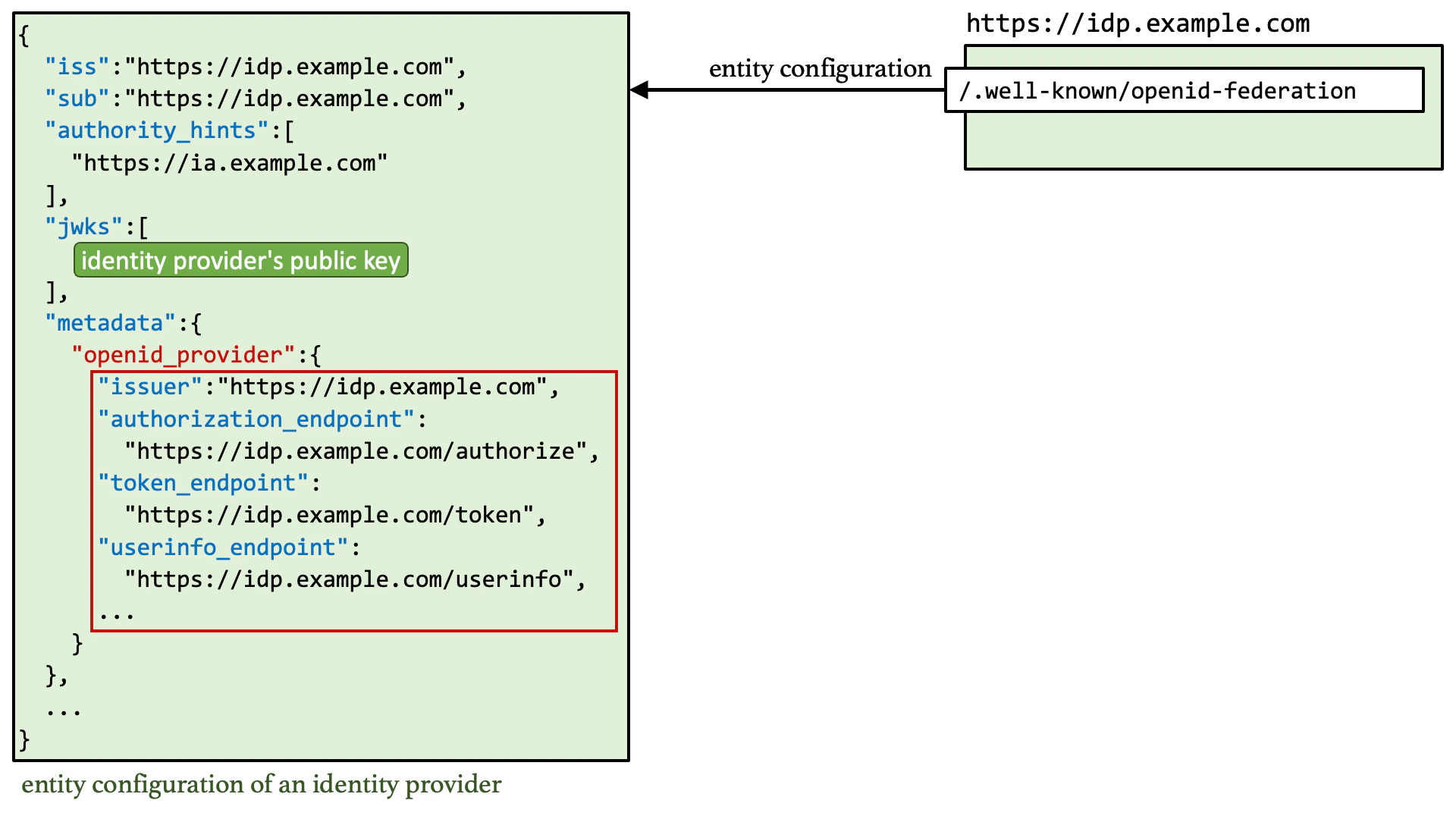 An entity configuration contains metadata of the federation entity.Identity Provider Metadata