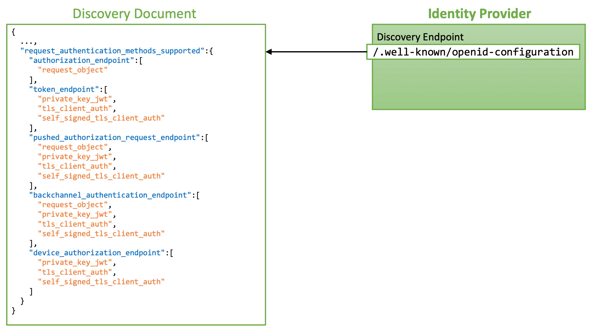 The value of the server metadata is a JSON object. Property names that appear in the JSON object are endpoint names such as authorization_endpoint. A property value is a JSON array listing request authentication methods available at the corresponding endpoint.