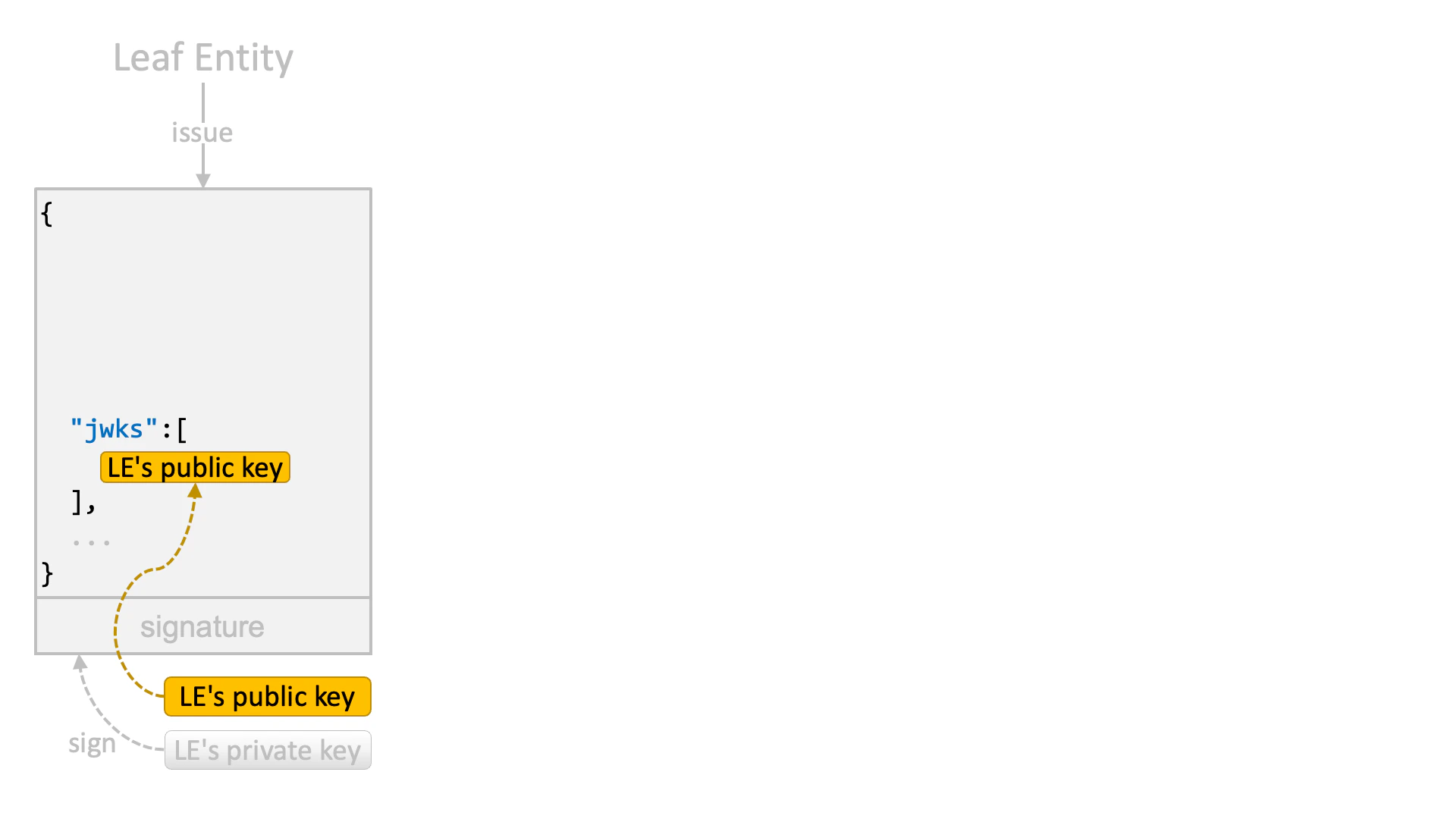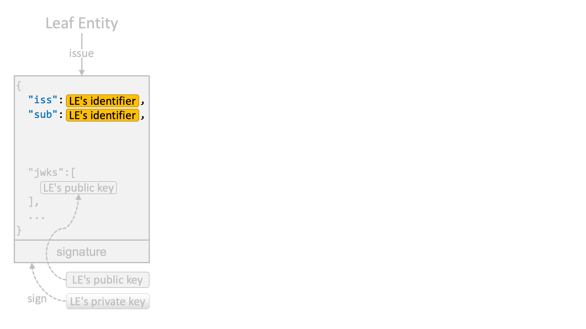 A leaf entity issues a JWT that is signed by the leaf entity’s private key.